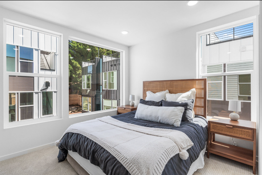 The third bedroom, located on the top floor, includes its own private walk-out patio, the fourth room can be used as a cozy retreat or flexible space for a home office.